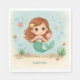 Cute baby shower or kids birthday paper napkin featuring adorable little mermaid
