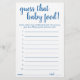 Simple "Devinez que la nourriture pour bébé" baby shower ou genre révèle une carte de jeu de devinettes de fête avec un script amusant et décontracté écrit à la main. Le design classique comprend une superposition de la typographie de citation à la main moderne. Pour d'autres couleurs ou produits correspondants, veuillez visiter le magasin JustFharryn Zazzle, ou contacter le concepteur, c/o Fharryn@yahoo.com Tous droits réservés. #bohochic #zazzlemade