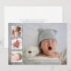 Moderne Geburtskarte mit einer Foto-Collage mit einem großen Hintergrundbild und drei quadratischen Fotos auf den links. Name und Geburtsdaten des Babys befinden sich am unteren Ende des Fotos. Der Rücken hat Ihre persönliche Nachricht in staubblauer Farbe. Mit dieser einfach und elegant gestalteten Birth Announcement Card können Sie Ihre Lieblingssendungen Ihres Neugeborenen mit uns teilen.