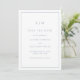 Einfache Save the Date-Karte mit modernem und dennoch elegantem Design, mit Ihrem zweistelligen Monogramm oben und Ihren Hochzeitsdetails, umgeben von einer dünnen Grenze. Der gesamte Text ist auf weißem Hintergrund in staubblauem Blau gehalten und kann in beliebige Farben des Designbearbeitungstools umgewandelt werden. Ein elegantes und stilvolles Design, das sich ideal für ein minimalistisches Paar eignet.