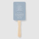 Moderne, elegante, einfache Skripte staubige blaue Hochzeitsprogramm Handfans mit einzigartigen, schicken goldenen Monogramm an der Spitze. Vervollständigen Sie Ihren besonderen Tag mit einer zarten Note zeitgenössischer Eleganz!