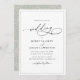 This elegant Wedding Invitation features a sweeping script calligraphy text paired with a classy serif & modern sans font in black, and frosted sage green back with a floral line art pattern & a customizable monogram. Matching items available.