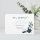 Une carte de réception bohème à fleurs navales, où vous pouvez fournir les détails des activités après le mariage.