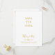 Cette simple et élégante carte postale de date est parfaite pour votre mariage moderne minimaliste blanc et or. Le design comporte une police d'or contemporaine minimale accompagnée d'une calligraphie formelle. Gardez-le tel quel, ou choisissez de le personnaliser avec vos propres oeuvres d'art ou photos !