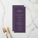 Cette carte de menu mariage de automne moderne et minimaliste à la réception offre un agencement simple et propre sur un arrière - plan violet foncé. Le design vous offre de l'espace pour ajouter vos menus de réception de mariage avec les noms de la mariée et du marié et leur date de mariage.