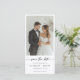 Mark the start of your new chapter with this simple, elegant save the date card. The bookmark layout puts your favorite photo front and center, showing the happiness and excitement you share. Clean script and simple type keep the look classic and warm.
