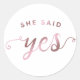 Simple Blanc Et Rose Elle A Dit Oui Faire-part Sticker