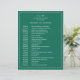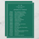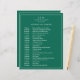 Einfache Wedding Timeline mit einem modernen, aber eleganten Design mit Ihren zwei Buchstaben Monogramm an der Spitze und Ihre Details umgeben von einem dünnen Rand. Der gesamte Text ist weiß über einen Juwel Ton smaragdgrünen Hintergrund und kann durch Anklicken des Buttons "Anpassen" in alle gewünschten Farben geändert werden. Ein elegantes und stilvolles Design, das sich ideal für ein minimalistisches Paar eignet.