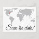Un simple enregistrer la carte postale date avec une carte du monde sur le devant. Marker sur la carte peut être déplacé pour montrer l'endroit approprié où les célébrations auront lieu!