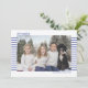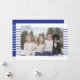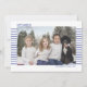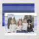 Des cartes photo élégantes et mignonnes sont parfaites pour tous vos amis et votre famille pendant cette période de fêtes. Personnalisez le texte "Joyeux Hanoukka" avec votre propre message et changez le nom de la famille et l'année, puis remplacez l'image par une photo de vos enfants, animal de compagnie ou de toute la famille. Le design présente un texte simple avec des rayures bleues sur le devant derrière la photo, et le dos est à l'opposé avec des rayures blanches sur un fond bleu.