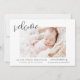 Simple Baby Faire-part Elegant Photo Collage qui ont une photo sur le devant et 4 Photo sur le dos. Les cartes contiennent une typographie manuscrite moderne lettrée cursive qui sont élégantes, simples et modernes à utiliser pour un nouveau-né bébé garçon ou petite fille envoyé par la mère et le père de l'enfant bébé à la famille et amis.