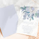 Belle faire-part de mariage florale délicate bleu muet présente une jolie aquarelle bleue couleur vintage fleurs et un design simple classique avec élégante typographie de script de calligraphie. Le dos est bleu poudreux classique.