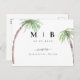 Simple Palmiers Tropicaux. Initiales Noires. Faire-Part de Mariage. Enregistrez la Date.