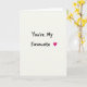 This greeting card keeps things simple, with the words “You’re My Favourite” as the main focus. The text sits centered on an off-white background with a faint paper-like texture. The letters are black, thick, and a little uneven, like they were written with a marker, which makes it feel honest and close to the heart. At the end of the phrase, there’s a small fuchsia heart that stands out as the only bright color. With no other objects or characters, your eyes go straight to the message and that tiny heart ❤️. It feels meaningful to give because it says something clear and affectionate without trying too hard, whether it’s for a partner or someone you care about.