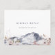 Cette simple carte postale de montagne fleurie demande RSVP est parfaite pour un mariage extérieur. Le design minimaliste moderne comprend une montagne bleu marine d'aquarelle avec des fleurs sauvages de chute rose pâle. Créez votre liste d'invités mariages et votre liste de chansons de piste de danse tout à la fois ! Cette carte postale de réponse mariage demande si les invités pourront assister à votre mariage, et aussi quelle chanson les amènera à danser.
