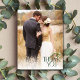 Zeigen Sie Ihre Wertschätzung auf eine wirklich persönliche Art mit unserer Simple Foto Hunter Green Wedding Dankeschön Postcard. Mit einem Single, einem wunderschönen Foto von Ihrem Hochzeitstag an der Vorderseite, gepaart mit einer eleganten "Danke"-Grafik in elegantem Jägergrün, bietet diese Postkarte ein sauberes, modernes Design, das Ihre Liebe und Dankbarkeit unterstreicht. Die Rückseite der Postkarte ist mit Ihrer persönlichen Danksagung völlig anpassbar, sodass Sie Ihren Gästen Ihre herzliche Wertschätzung ausdrücken können. Ideal für Paare, die sich ohne viel Aufhebens ein zeitloses, stilvolles Dankeschön gewollt haben. Dieses Design verbindet Eleganz mit Einfachheit.