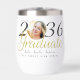 Ce chic et branché Wine Tumbler 2023 de graduation présente une photo recouverte d'un script élégant. Le texte Graduate est écrit avec des lettres métalliques d'or faux avec des strass (aucun vrai strass ou feuille d'or ne sera utilisé). Vous pouvez ajuster le libellé et modifier les polices au besoin, à la fois sur l'avant et sur l'arrière du produit. Choisissez ce design élégant et classe pour la classe de 2024!