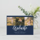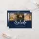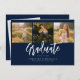 Graduation 4 Photo Collage Script Navy Blue Script carte de Faire-part. Customisez facilement en changeant le texte et en remplaçant les photos par les vôtres. Une façon moderne et moderne d'annoncer votre diplôme cette année!