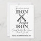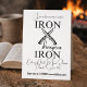 Minimalist Iron sharpens Iron with crossing knives, Christian Men's Retreat Invitations. Simple modern black and white typography. Proverbs 27:17 in the King James Version of the Bible says, "Iron sharpeneth iron; so a man sharpeneth the countenance of his friend". KJV scripture verse. Add your Church Name/Venue or City/Date of Event/Website or RSVP info.