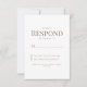 Carte de réponse RSVP de mariage blanc. Dîner et danse. Police moderne. Police combinée. Texte or. Floral jaune.