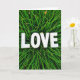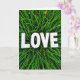 This card shows the word “LOVE” in chunky, white 3D letters placed right in the middle of the front. The letters look a bit worn on the surface, like the paint has lightly rubbed away in spots, which gives them a cozy, lived-in feel. Around the word is a thick bed of thin green blades, like chives or grass, in shades from deep emerald to lighter lime. The greenery spreads out in every direction and makes the white letters stand out, while still feeling soft and natural. Bright, even light keeps everything easy to see, with only gentle shadows along the edges of each letter. If you look closely, you can spot tiny dried golden-brown bits tucked among the green, adding a small reminder that nature is always changing. It feels meaningful to give because it keeps the message simple—just love—while the natural setting makes it feel real and grounded 🥰❤️.