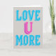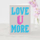 This greeting card centers on the message “LOVE U MORE” stacked vertically down the middle. The background is a soft, neutral gray that helps the words stand out right away. “LOVE” and “MORE” are in bright cyan, while the “U” in the center is a strong magenta that draws your eyes first. The letters look slightly raised with a small shadow, giving the text a gentle 3D feel. Inside the shadows, there’s a tiny dotted pattern that adds texture and a throwback print look. The words are in thick, simple lettering, and the layout feels direct and easy to read. It’s a meaningful card to give because it says exactly what you feel—affection that’s simple, honest, and a little fun 🥰❤️. Hope it helps you share your Valentine’s Day sentiments with someone you care about.