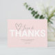 Dites merci à vos amis et à votre famille avec cette simple carte de remerciement de thème de la Saint-Valentin. Le design présente les mots Amour et Merci dans une typographie script manuscrite tendance avec une police moderne et un cœur sur un fond rose pâle. La carte inverse en un motif x et o aquarelle élégant. Pour voir la suite de l'invitation assortie, visitez www.zazzle.com/dotellabelle.