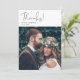 Mariage simple et moderne merci carte recto-verso modèle avec un texte qui dit merci! en écriture manuscrite en haut. Vous pouvez ajouter une deuxième image au dos de la carte ainsi qu'un message modifiable. Parfait pour les minimalistes qui veulent que leurs photos soient le point central de leur carte de remerciements.