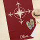 Imagine showcasing your passion for Aviation or Travel with this simple. modern beach towel. Design features airplanes flying in many different directions from a compass. Customize it with your name or initials, change the default dark red background color, or change the color of compass image from cream color to your favorite color. Perfect birthday present for a Pilot, Aviator, or travel lover.
