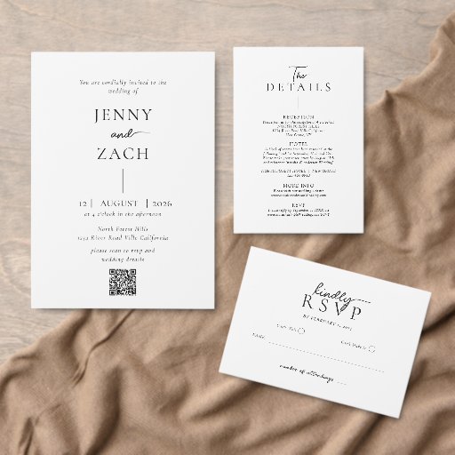 Create a seamless and stylish way for your guests to respond with this simple modern RSVP enclosure card. Featuring a typography script, this design blends timeless sophistication with convenience through a scannable QR code.