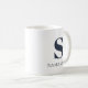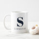 This simple minimalist design features your name beneath a large initial in a modern minimalist navy-blue typography on a white background. Simply add your name and initial in the personalize section to create your own stylish monogram coffee mug. Great personalized birthday or housewarming gift.