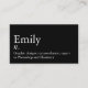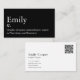 Custom modern and professional business card design with a dictionary definition design style. With template fields for name, company name/title, contact information and QR code (delete if you prefer). Minimalist simple modern white text on black background. Change background colors, move and resize elements with the customization tool. ©Marisu Valencia