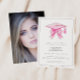 Simple Modern Photo Graduation Party Invitation - cette invitation simple et moderne comprend une casquette de graduation rose avec un arc coquette et une photo de fond plein de votre diplômé sur le dos. Notre modèle d'invitation vous permet de personnaliser votre invitation de façon si simple.