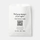 Simple moderne QR Code Favor Sacs, s'il vous plaît personnaliser en utilisant le modèle de personnalisation en ligne avant de commander. Veuillez modifier l'URL (adresse du site Web) du code QR dans le champ URL du code QR, en l'adresse de votre site Web d'entreprise, afin que le code QR soit généré automatiquement pour vous. S'il vous plaît également changer les autres champs si désiré, ces champs sont pour le texte affiché sur les sacs de faveur : le slogan d'en-tête, votre nom d'entreprise, une suggestion aux gens pour qu'ils scanner le code sur le sac pour visiter votre site Web, y compris votre adresse de site Web dans un formulaire texte pour les personnes qui pourraient vouloir naviguer sur votre site manuellement, et votre numéro de téléphone d'affaires. Si vous devez changer la taille de police, le style de police ou la disposition, cliquez sur "Modifier à l'aide de l'outil de conception" pour "customiser plus loin".