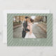 Eléments : Lignes propres, script moderne, photo. Couleurs : vert sauge, blanc Thèmes : moderne, minimal, minimaliste, simple, propre, contemporain, chic, printemps, automne, hiver, neutre, vintage, rustique, vignoble, boho, tendance. Collection : Simple Sage moderne Green Calligraphy Collection Mariage Type de produit : Invitations de mariage