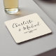 Add a touch of sophistication to your wedding decor with our Simple Natural White Script Minimalist Wedding Square Paper Coasters. These coasters can be customized with the bride and groom's names and wedding date, making them a perfect keepsake for guests to remember your special day.