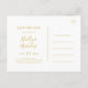 Cette simple carte de vœux de Noël blanche pour le save the date est parfaite pour votre mariage d'hiver minimaliste moderne. La calligraphie luxueuse dorée classique, associée au fond blanc traditionnel, le tout encadré d'un cadre minimal, est sûre de compléter l'ambiance colorée des fêtes que vous recherchez. Vous pouvez la personnaliser avec vos propres photos ou illustrations ou la garder telle quelle. N'oubliez pas de parcourir le reste de la collection pour compléter votre thème de mariage !