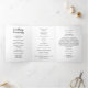 Un programme de mariage simple et élégant. Ce design intemporel s'adapte à n'importe quel thème mariage. La couleur arrière - plan comme indiqué est blanche, mais la couleur arrière - plan et le texte peuvent être customisés pour correspondre à vos couleurs mariages.