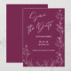Introducing our minimalist and trendy wedding Save the Date card, featuring a Pansy Purple color adorned with a simple yet elegant floral design. The delicate white calligraphy adds a touch of sophistication to this Pansy Purple Save the Date card, making it an ideal choice for a modern wedding celebration.