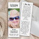 Cartes Signets de prière funéraire Sympathie moderne. Cette simple carte de signet de poème commémoratif présente un design blanc moderne. Avant "In Loving Memory" Personnalisez cette carte de prière funéraire commémorative avec vos proches photo, nom & dates, et sentiment. Retour ~ Poème 'Miss Me', qui peut être personnalisé, s'il vous plaît tendre la main si vous voulez un design avec un poème spécifique autre que. Cette carte de prière commémorative sera un souvenir précieux, pour les services funéraires, les faveurs funéraires et la célébration des cadeaux de la vie. DROIT D'AUTEUR © 2020 Judy Burrows, Black Dog Art - Tous droits réservés. Simple Photo Memorial Poem Signet de prière funéraire