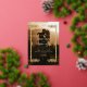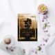 Modern stylish elegant photo wedding invitation with gold dust on with a gold ink pour effect (the gold is a digital effect, not real foil) and modern calligraphy. Classy and elegant, simple and modern invitation.