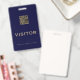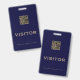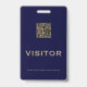 Keep your visitors and guests easily identified with this simple customizable QR visitor badge. The blue and gold design features a customizable QR code and text that reads "Visitor" in a classic font. The QR code makes it easy for guests to access important information about your facility or event. The text at the bottom reminds visitors to please return the badge before leaving. This badge is perfect for businesses, hospitals, schools, museums, attractions, and more.