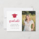 Cette invitation à la remise des diplômes présente un thème simple noir et blanc avec un casquette rouge et un goût d'or. Ajoutez une photo et un texte de personnaliser sur le devant et le dos pour inclure tous les détails de votre fête de remise de diplômes.