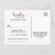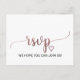 Cette simple demande de chant de calligraphie or rose carte postale RSVP est parfaite pour un mariage moderne. Le design minimaliste est doté d'une police de caractères élégante et d'un coeur féminin. Créez votre liste d'invités mariages et votre liste de chansons de piste de danse tout à la fois ! Cette carte postale de réponse mariage demande si les invités pourront assister à votre mariage, et aussi quelle chanson les amènera à danser. Remarque : Ce design ne présente pas de véritable feuille d'or rose. C'est un graphisme de haute qualité fait pour ressembler à du papier doré rose.