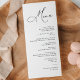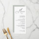 Conçue pour coordonner avec notre collection de mariages de script romantique, cette carte Menu personnalisable, dispose d'un texte de calligraphie de script balayé avec une police serif classe en noir avec un dos vert sauge gelé et un monogramme personnalisable. Éléments correspondants disponibles.