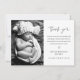 Simple Script Black and White Baby Photo Thank You Card. Click the edit button to easily customize this thank you template with your own details and photograph.