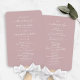 Einfache Fans der Solid Dusty Mauve Pink Hochzeitsfeier. Diese moderne Minimal Order of Services Card ist schlicht klassisch und elegant mit schlichter Hintergrundfarbe und einem hübschen Schriftart mit Schwänzen in der Schriftzeichen-Kalligraphie. Im neuen Farbraum gezeigt. Erhältlich in mehreren Farboptionen, oder fühlen Sie sich frei, die Farben aus dem Editor zu bearbeiten (klicken Sie weiter anpassen während der Personalisierung). Um mehr zu sehen, suchen Sie nach Chic Paperie's Hochzeitskollektionen 2022, um alle über Trend Designs und Hochzeitsfarben für dieses Jahr zu sehen.