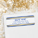 Fügen Sie eine elegante Touch zu den Umschlägen mit stilvollen königsblauen, goldenen und weißen Rücksendeadressen-Aufklebern hinzu. Text auf dieser Vorlage ist einfach zu personalisieren. Das Design besticht durch eine schicke, moderne Typografie und klassische Imitate mit Goldfolie und weißen horizontalen Streifen. Bitte beachten Sie, dass Gold farblich gedruckt ist, nicht metallische Folie.