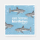 Dieses niedliche Design besticht durch eine schlichte Dekoration aus blauem Party, einen niedlichen Ozean aus Party, mit Aquarell-Haifischfischen, eine blaue Papierserviette, einen Cocktail-Trinkbehälter-Drink, mit wild lebender Wildnis nautisch maritim Leben, Haie Fisch grauschwarz, ein lustiges, festliches Picknick einladen, ideal für Sommerspass schwimmen Party, für Hinterhof Kindergeburtstag Party