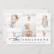 Carte photo de vacances simple et élégant dispose de six photos dans un montage, avec votre nom de famille et message personnalisé le long du fond en gris fusain. Ajoutez une photo supplémentaire à l'arrière, ainsi qu'un texte personnalisé supplémentaire en option. Un beau choix minimaliste qui fera de vos mailings de vacances se démarquer du pack.
